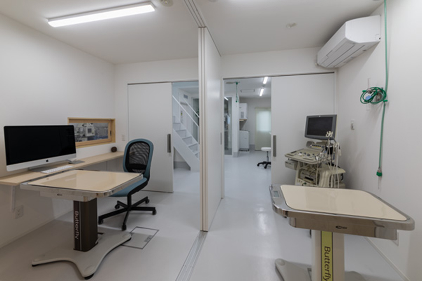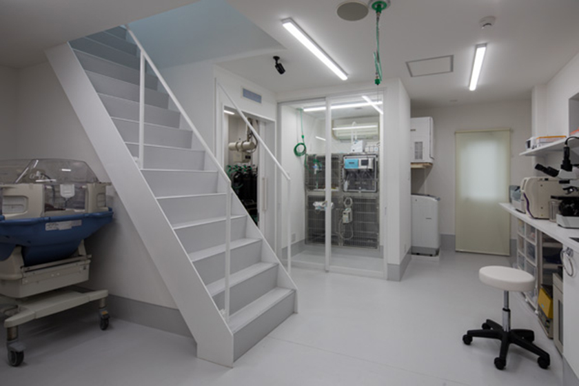 将来2階にも待合室や診察室を設けたいという構想を考慮したうえで、既存階段はそのまま残しつつ処置室内に新しく階段を設置することで、 使い勝手のよいスタッフ用動線を確保出来たと思う。