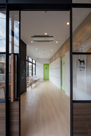 内部は、入り口、待合室、診察室、入院室をそれぞれ2つ設け、犬と猫、小動物が安心して受診出来るプランとしている。
