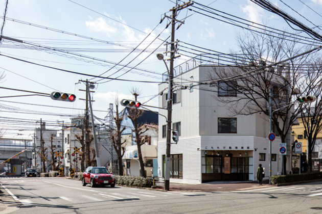 芦屋市の打出駅近く、比較的車通りのある交差点の角地に位置する。