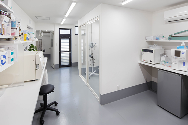 また日本料理店として新築された木造建築物の改装だったため、壁や柱の位置など動物病院のプランに合わない部分が多くあった。 そこで構造補強計画により安全性を確認しつつ壁や柱の位置を変更し、どうしても変更できない柱は樹のモニュメントとするなど構造的・意匠的な工夫をした。