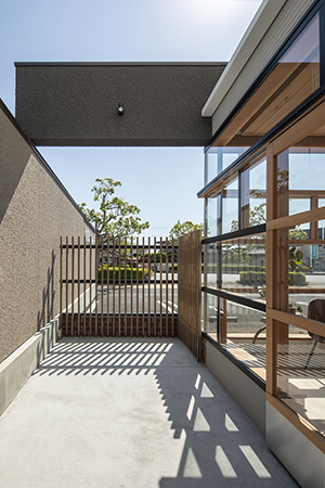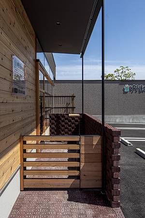 また待合室のガラス面も横桟を強調する組み方とし、横への広がりを表現している。